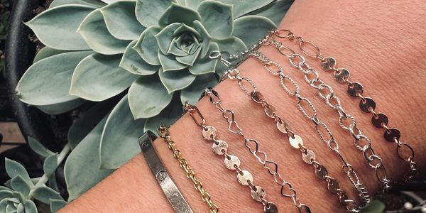 At Bloom & Bond, we offer a unique permanent jewelry experience that delivers a custom fit, seam free look. Choose from our stunning selection of 14k gold-filled and sterling silver chains to create a clasp-less bracelet, anklet, necklace, or ring that’s designed to last.